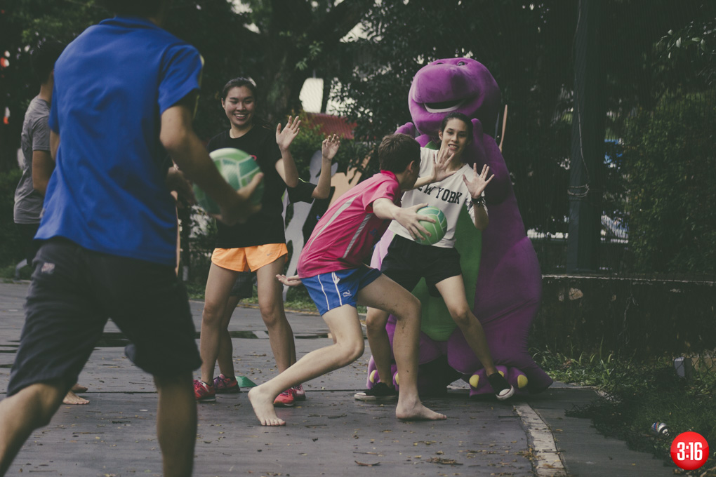 We were divided into 4 teams, each team tasked to protect their mascot from getting hit by flying balls, while trying to hit other teams’ mascots. What ensued the moment the starting whistle was blown was ebullient energy: leaping limbs, people who discovered their inner Flash, incredulous screams as their own mascots got hit, and joyful bellows as opposing teams’ mascots cowered behind human defense lines.